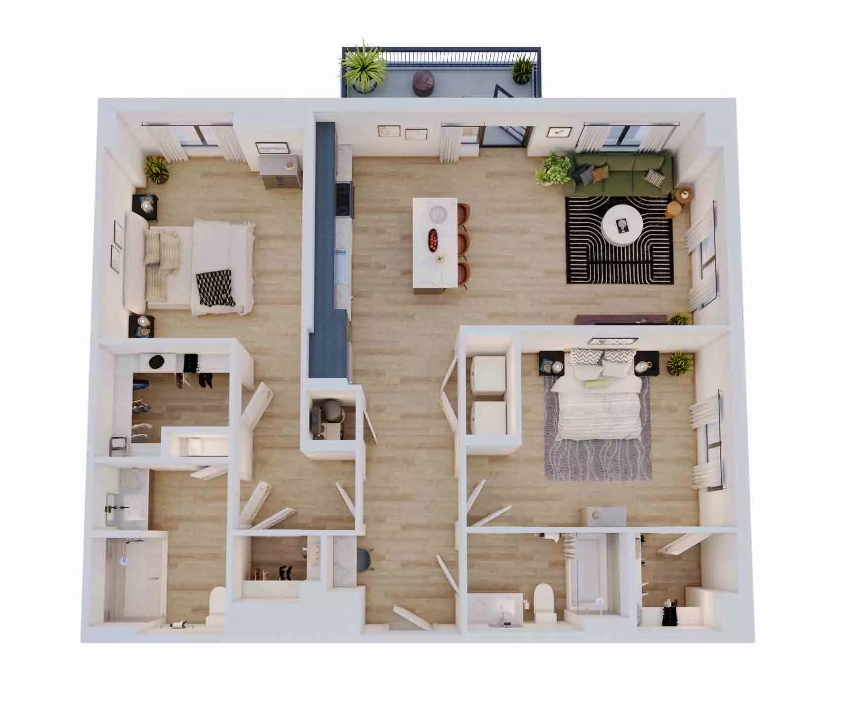 Studio, One-, and Two-Bedroom Residences With Modern Style